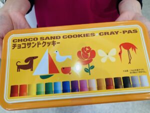 大阪のお土産。クレヨンの缶に入っていてびっくり。